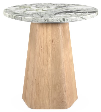 The Evelyn accent table is a harmonious contrast of materiality and tactility, where a weighty base meets a visually light marble top. With five connected sides equipped with softened, rounded edges, the base assumes an organic appearance, its natural color subtly softening the marble top for enduring visual appeal.Read More