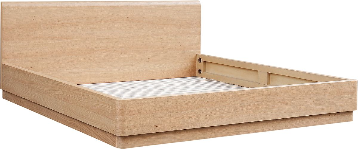 The low build and the softly molded corners of this king bed give it an air of quiet sophistication, while the solid panel headboard is a perfect showcase for the wood’s fundamental beauty. As part of the Round Off bedroom collection, try pairing it up with the nightstand and dresser for a complete look. Natural beauty and character come together to promote mellow relaxation in the most personal room of your home.