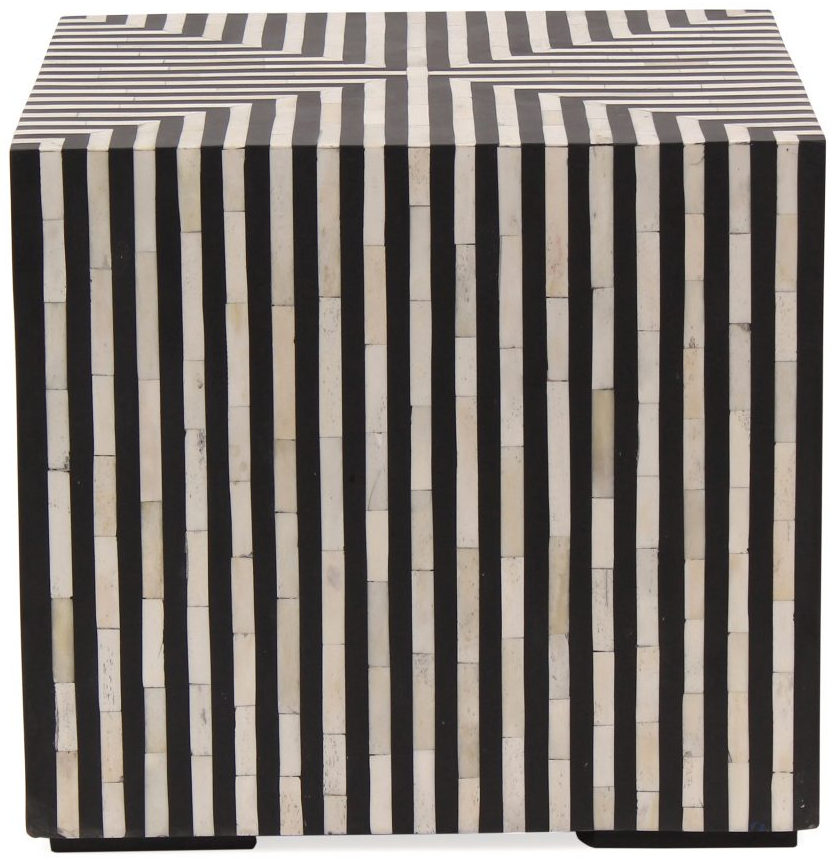 Simplistic and bold, the Terning side table's hypnotic art deco design is an exercise in contrasts. A veneer of ethically sourced white and black camel bone with resin adds a visual statement that contrasts with its simple construction and square shape. The Terning series features a coffee table and a side table to better suit living spaces of all sizes and shapes.Read More
