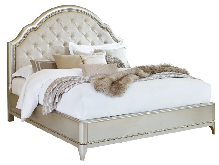 The Roaring 20s are coming back with this Art Deco-inspired bed. Gorgeous hand-carved wood details with a stunning silver finish brings out the brilliance in the Florence Bed. It features an inviting headboard lined with button tufted upholstery in a rich cream fabric. This bed will add a bit of spectacular to your bedroom décor.Read More
