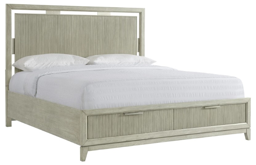 20th-century design gets a contemporary make-over with the Positano bedroom set. The centerpiece is this deluxe bedstead. A light gray finish on the oak veneers with inlaid slats detailing gives the bed a sophisticated, clean look, while the solid wood construction and under-mattress drawers make this a bed that you will use and love for years to come.Read More