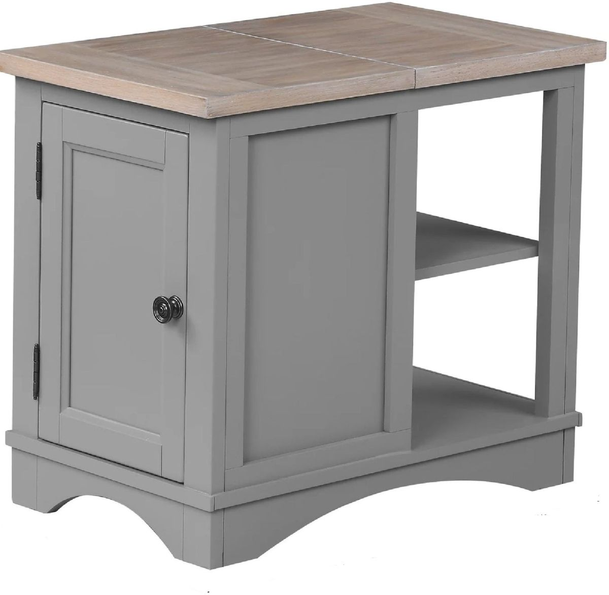 The ultimate addition to any chair or sofa, the Americana Modern Chairside Table adds style and function to a space. Crafted in a cotton white finish with contrasting wood-grain top, it features adjustable display shelves and a closed compartment for storage. Charging your devices has never been more convenient than with its power center featuring dual AC and USB outlets.