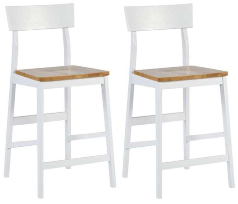 The counter chairs have comfortable wood seats and all have factory installed angled side stretchers for lifetime of use. A curved panel back provides great comfort. Also in a two tone Light Oak and White finish.Read More
