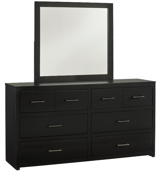 This dresser and mirror set showcases sleek, clean lines and a modern design, all wrapped in a bold Black finish. Its contemporary aesthetic adds a touch of sophistication, making it a stylish and functional addition to any bedroom.Read More