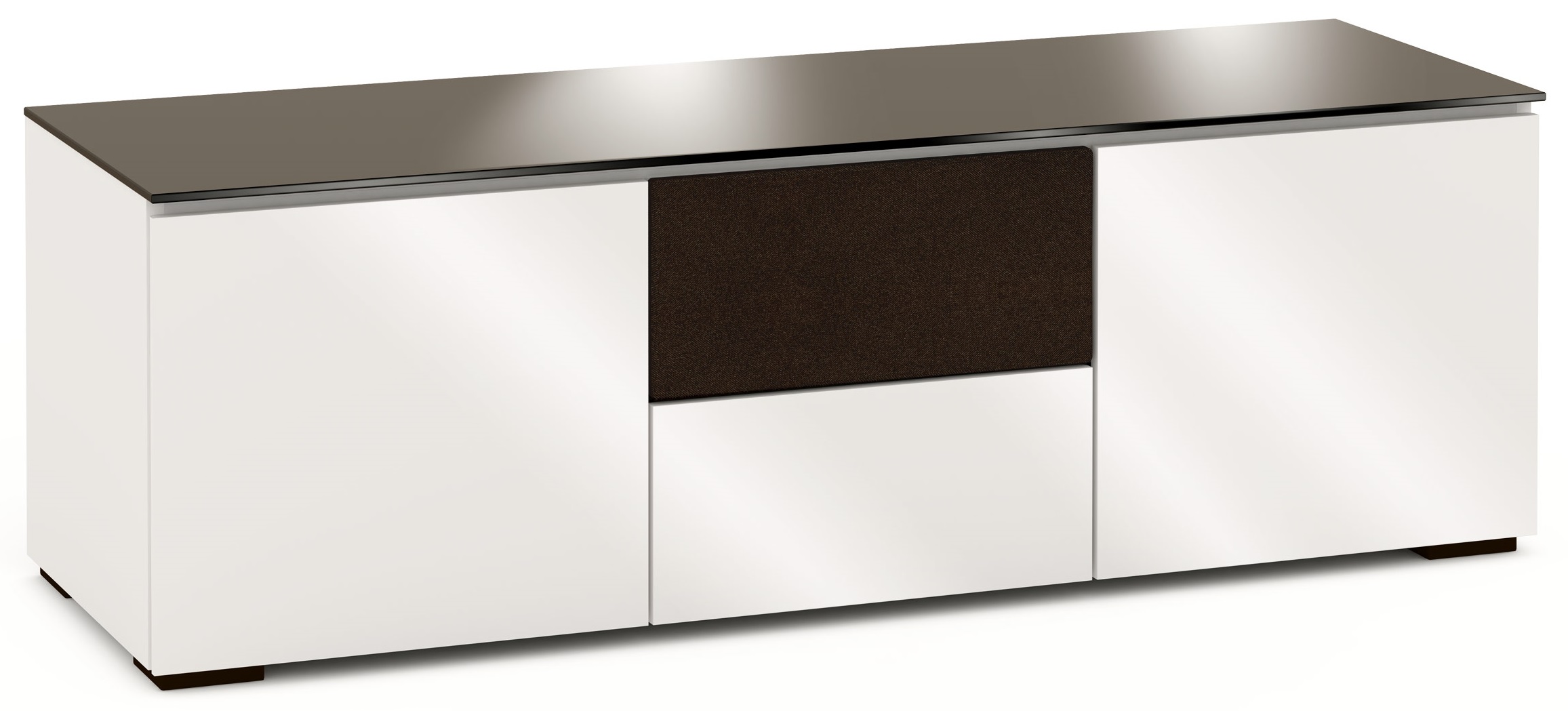 Cabinet’s center segment features a speaker opening with a removable grille designed to hide a speaker