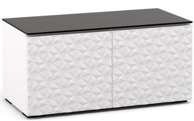 Finished in white, Milan is a sleek door design with a modern geometric three-dimensional, diamond pattern. Features infinitely adjustable, black interior shelves. Built-in ventilation louvers for better air flow keep equipment cool