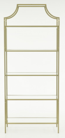 It’s time to give your home the style that it deserves. Do your home a favor and add a touch of luxury and sophisticated design with this bookcase from the Curiod collection. This narrow bookcase features five open shelves, each with a safety-tempered glass surface that adds an extra pop of panache to your home decor. These glass shelves make the perfect spot to store stacks of books, work binders, and other around home essentials. These shelves are also ideal for displaying pictures of your family, vases full of flowers, or any other of your life’s most prized possessions. Its rounded edges and curved indent design give it a stunningly unique appearance that is sure to grab the attention of your friends and family. Constructed from sturdy metal and finished in Satin Gold, this elegant bookcase adds classic beauty to any room and will have you living in the lap of luxury.