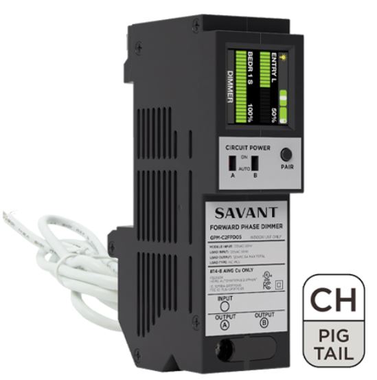 The Savant Dual Forward Phase Dimmer module is the ideal choice for use with forward phase dimmable loads. Designed to be installed in CH style breaker panels, with pigtail connection.Read More
