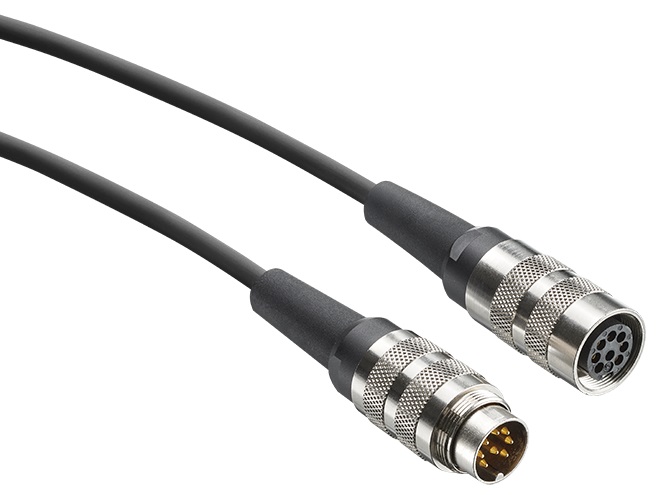 Cable with double twist (double helix) braiding as shield. Diameter 5 mm, length 10 m. DIN 8 connectors.