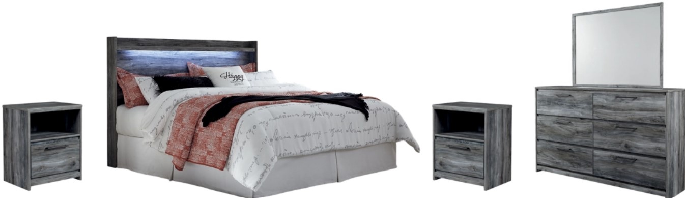 Shelter your room in the beachy mood of this headboard, two nightstands and dresser with mirror. Surfer-inspired with driftwood charm, the headboard includes cool LED lighting for a modern touch. Linear drawer pulls emphasize the clean lines of this rustic bedroom set.Read More