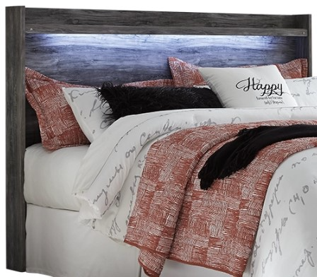 Rest in the beachy style of this king panel headboard. Its driftwood and surfer-inspired smoky finish and cool LED lighting give this headboard a rustic look that's perfect for creating an island oasis. Clean lines and modern charm blend for an authentic look to be enjoyed for years to come.Read More