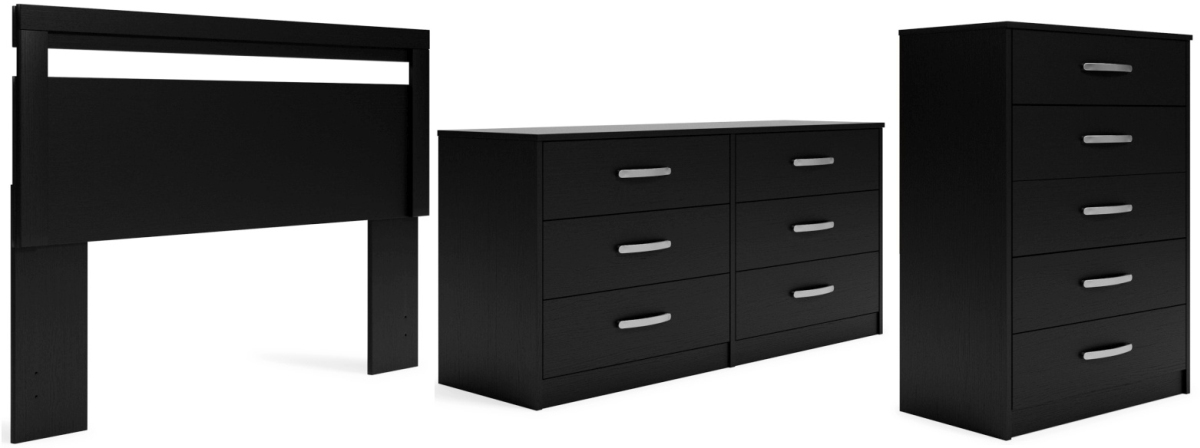 Includes full panel headboard (does not include bed frame), 6-drawer dresser and 5-drawer chest