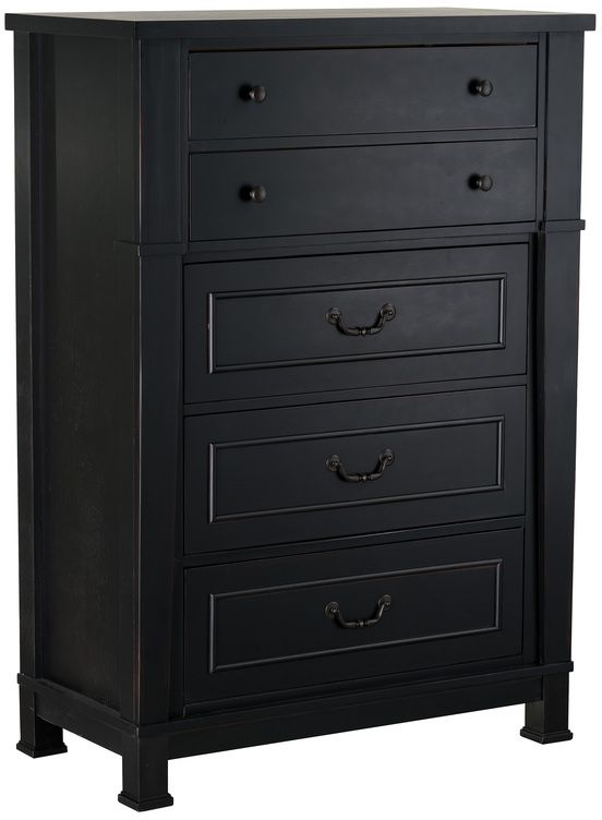 There’s just something about Annapolis’ vintage black finish with its worn edges and homey cottage styling that gives you a laid-back comfortable feeling. This easily fits youth, guest or master bedrooms. Pair the Annapolis Drawer Chest with the matching Annapolis Panel Bed, Dresser, Mirror and Nightstand to complete the look.