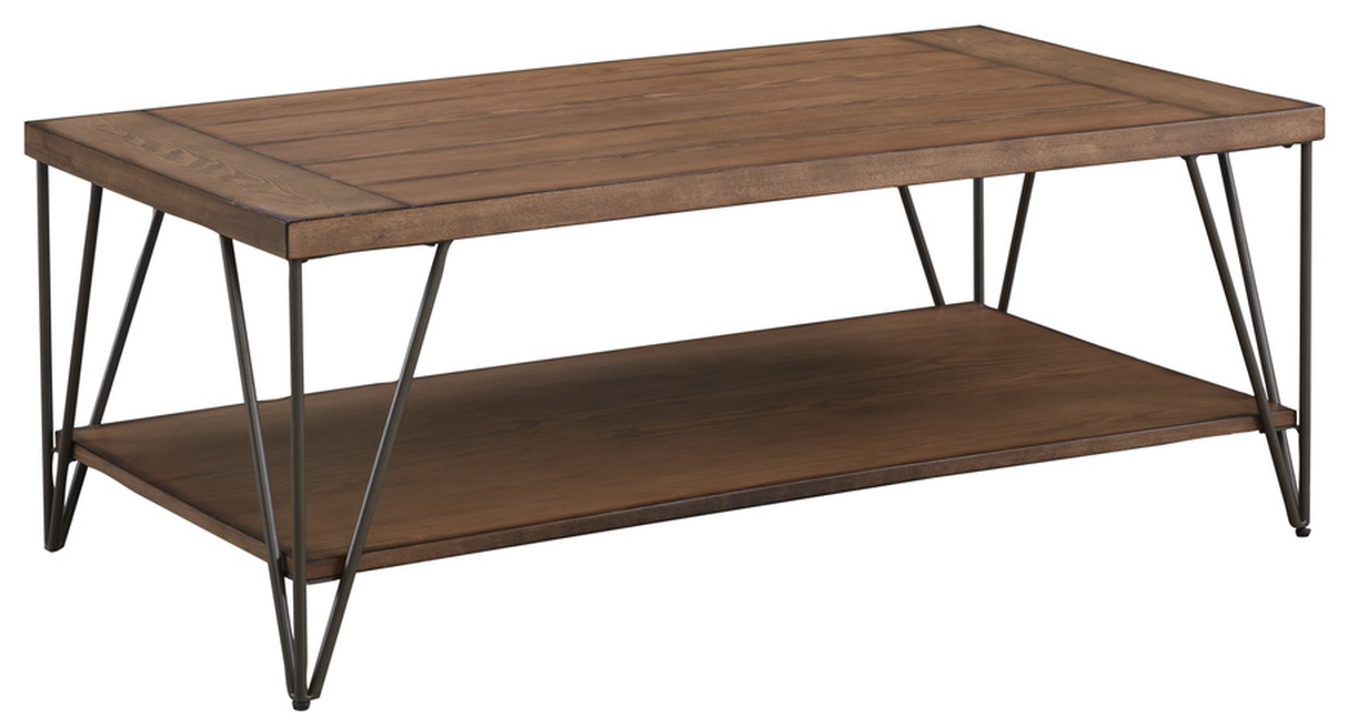 Industrial styled Bedford Cocktail Table has a fresh contemporary look with its metal hairpin legs and plank tops in a distressed, rustic brown finish.Read More
