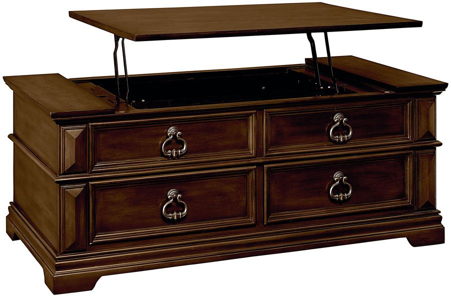 A Lift-Top Storage Cocktail offers a motion top with storage compartment, casters on the base, and push-through bottom drawers.