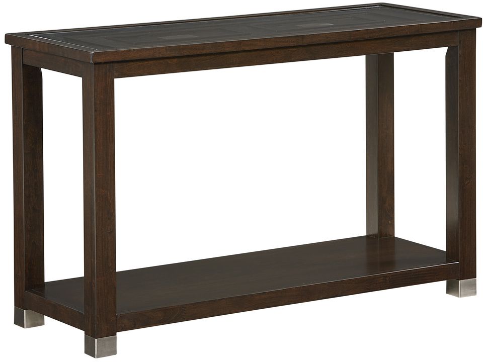 Cool geometric frames, a pop of metal trim and a rich dark merlot stain add up to the bold contemporary vibe of Colton Sofa Tables.Read More