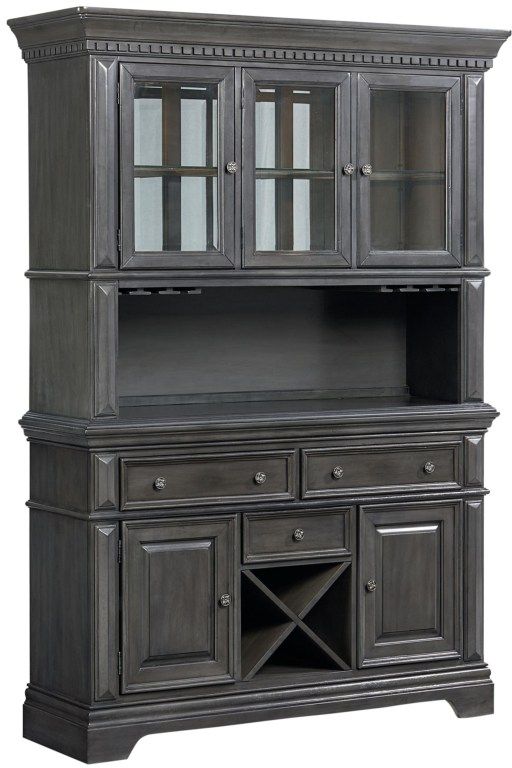 Garrison Buffet and Hutch has a strong sense of tradition with its familiar shapes and details, but gets a modern-day makeover with a smooth grey burnished finish accented by satin nickel hardware.Read More