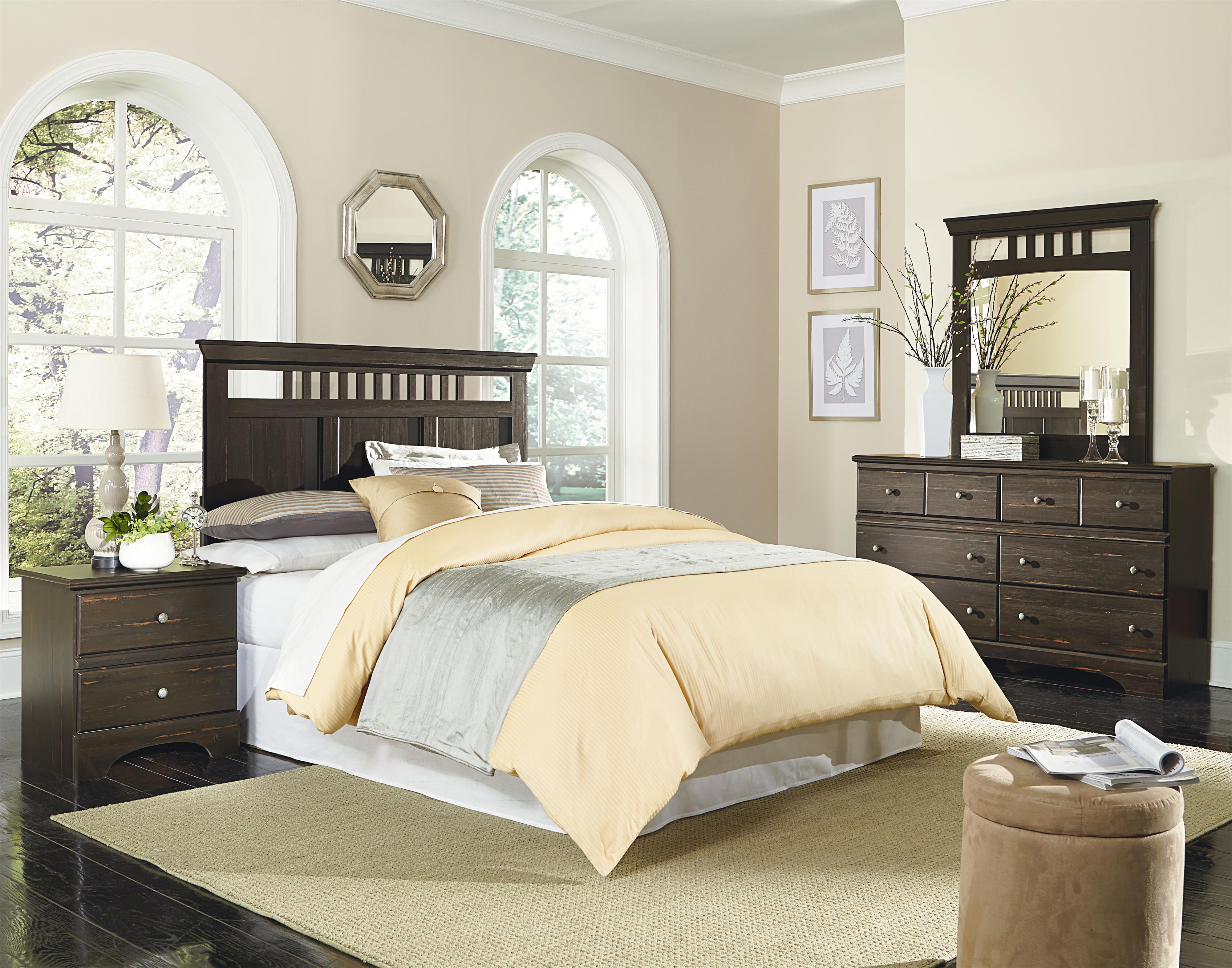 Hampton has casual rustic character, with its open slat crown details and dark antique paint finish. This versatile group works equally well for youth, master or guest rooms.