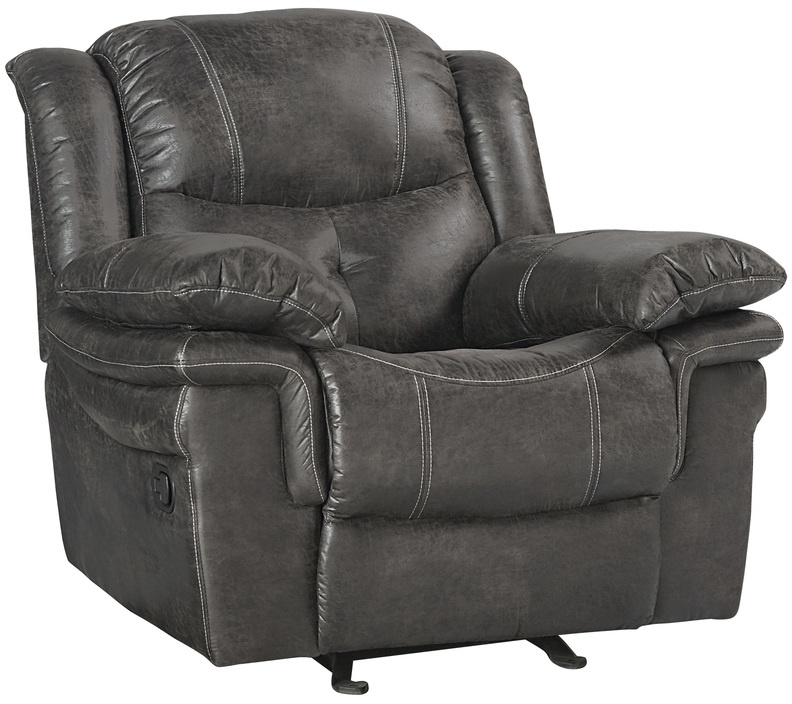 Relax away in the Huxford Glider Recliner, then put your feet up and enjoy a short nap in the full lay-out reclining position. Huxford’s thick pillow top arms and deeply cushioned bustle back will cradle you in ultimate comfort.