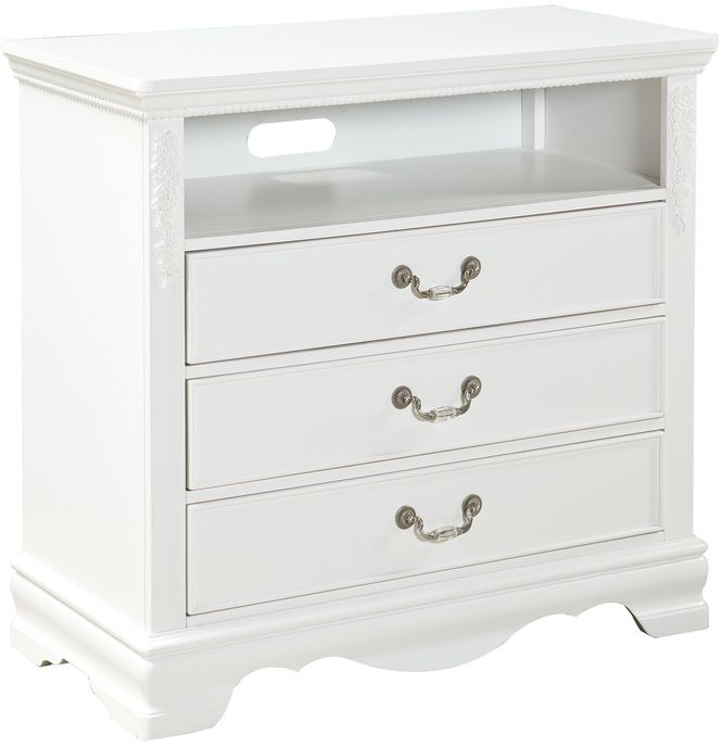 Jessica Entertainment Console's charming cottage details are given a posh silver finish that will add a glamorous touch to every modern young lady’s bedroom space. Pair it with the matching Jessica bedroom pieces to complete the look.