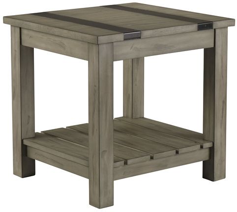 Simple elegance of the Nelson Grey End Tables are their clean square profiles and industrial accented metal straps. A timeless design that blends well with modern to rustic casual styles. Pair them with the matching Nelson Grey Cocktail Table and Console Table to complete the look.