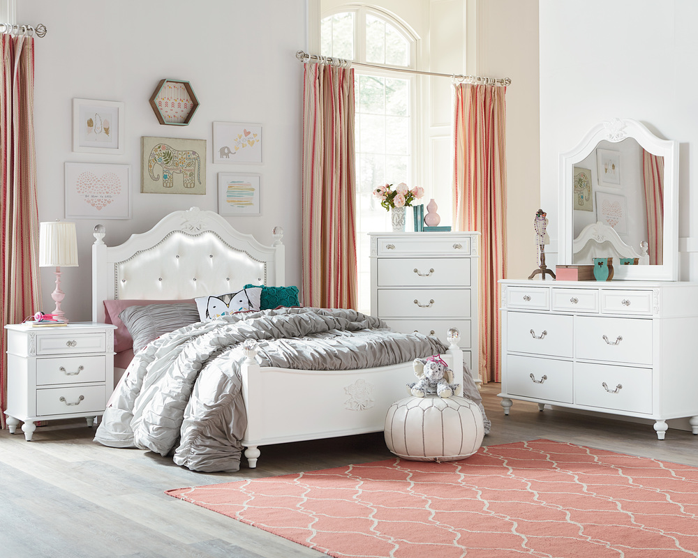 Elegant and welcoming, Olivia’s European styling of white smooth paint and delicate adornments are divine, creating the dramatic bedroom young ladies relish. Set Includes Twin Upholstered Poster Bed with Dresser and Mirror.