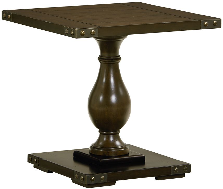 Weighty balustrade turnings and riveted corner brackets lend a salvaged architectural element to the Pierwood End Table, and a burnished brown stain adds a casual timeworn patina.Read More